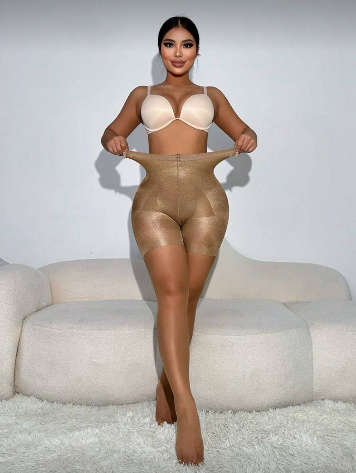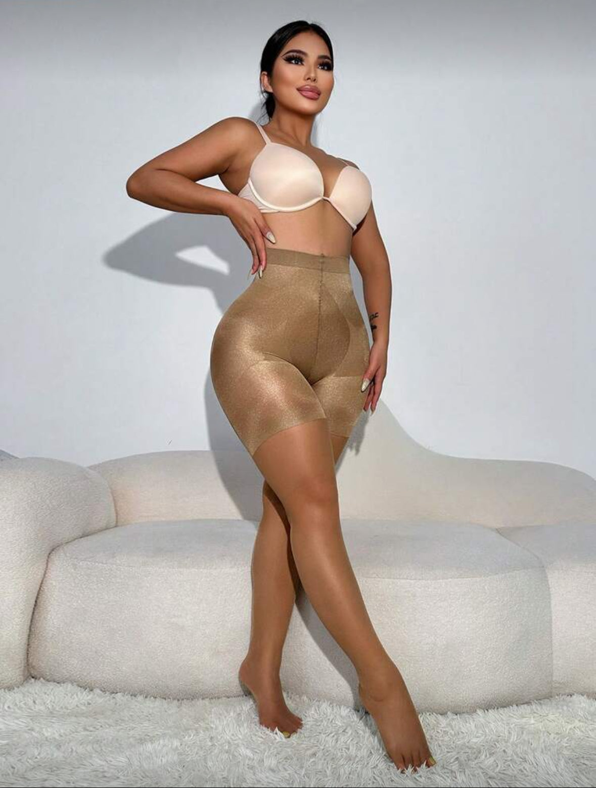 Combínalas con botas altas para un look estilizado y moderno, o con zapatos de tacón para resaltar tu figura al máximo. Úsalas bajo vestidos y faldas midi o mini para un efecto moldeador discreto. Para un toque más elegante, llévalas con abrigos largos que realcen tu silueta y completen tu outfit con sofisticación.